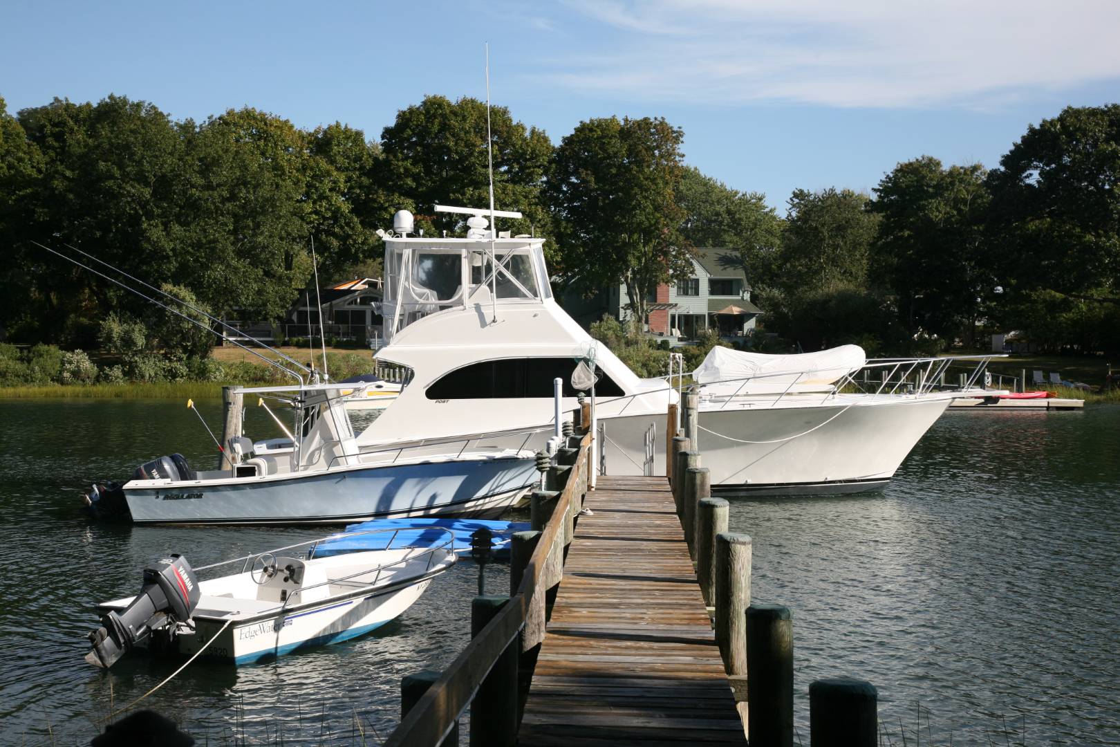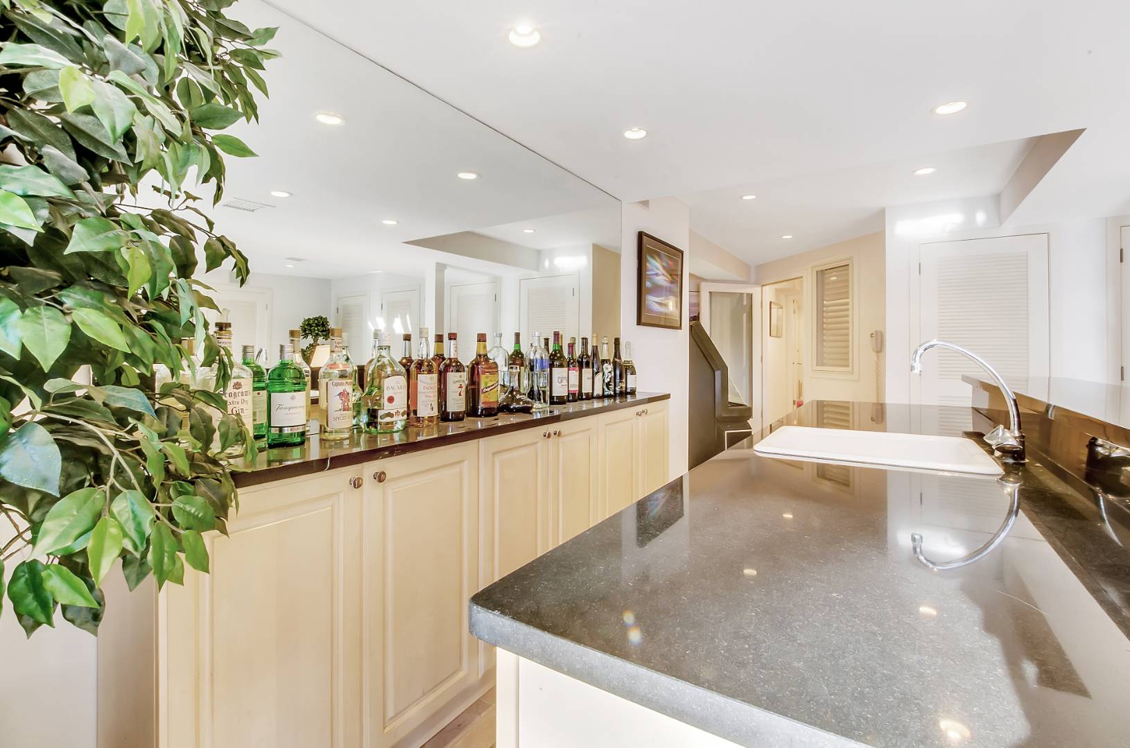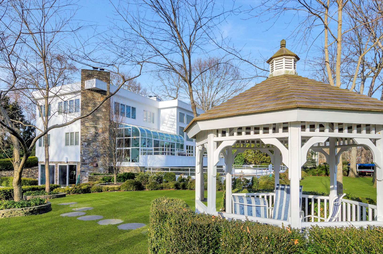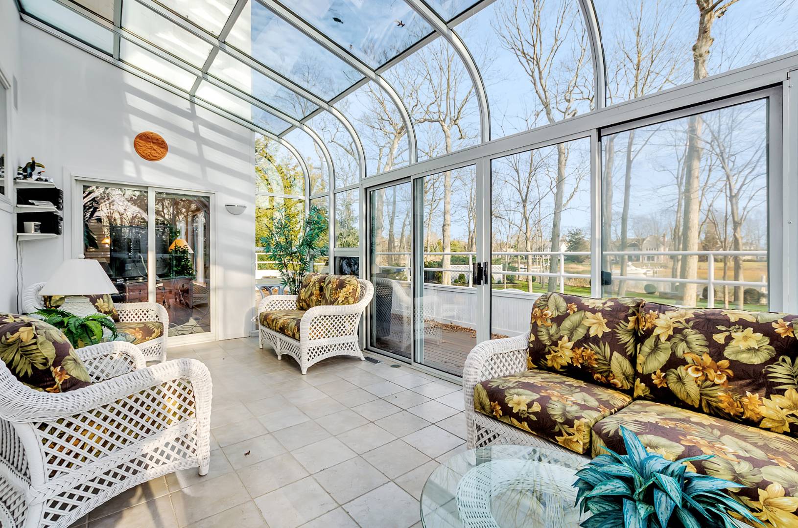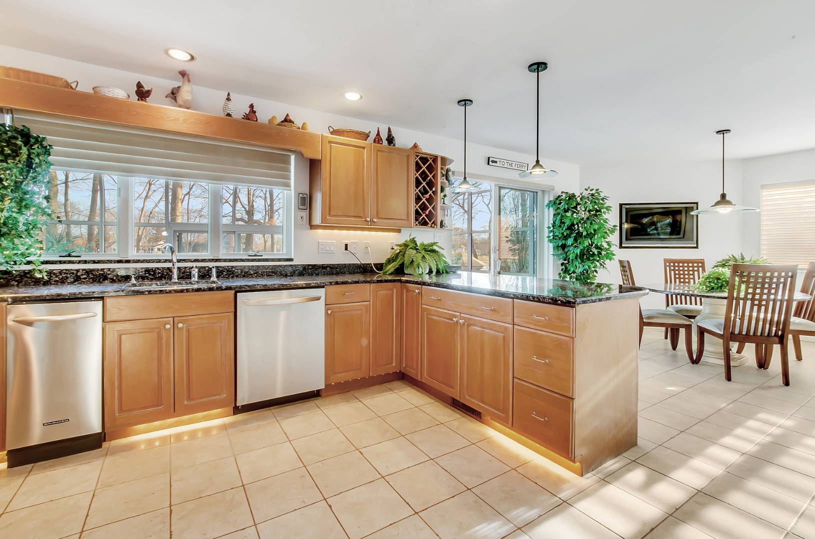 MENANTIC: Waterfront contemporary with deep water dock. Master ensuite with steam shower and Jacuzzi tub and fireplace, plus 3 additional guest bedrooms and 2.5 baths. Vaulted living room with stone wood burning fireplace and waterside views. Chef's kitchen, waterside deck and heated saline gunite pool. Light-filled lower level entertainment room with gas fireplace, bar, full bath and walk out. The property has mature specimen trees and is landscaped for privacy. Close to beaches and shops. Only minutes by motor yacht to Sag Harbor and East Hampton. Co-Exclusive: $2,495,000.
