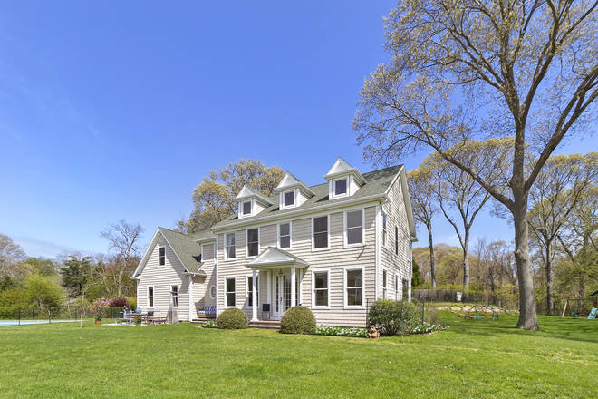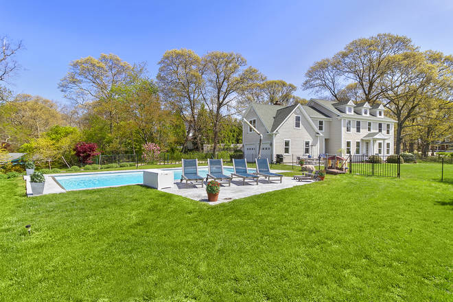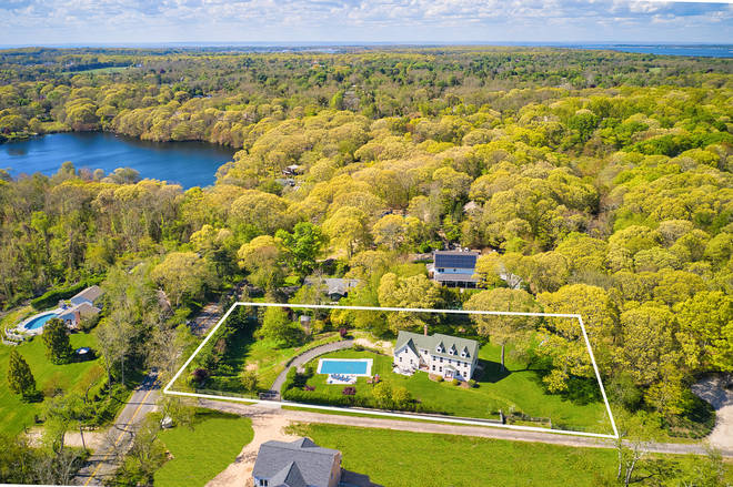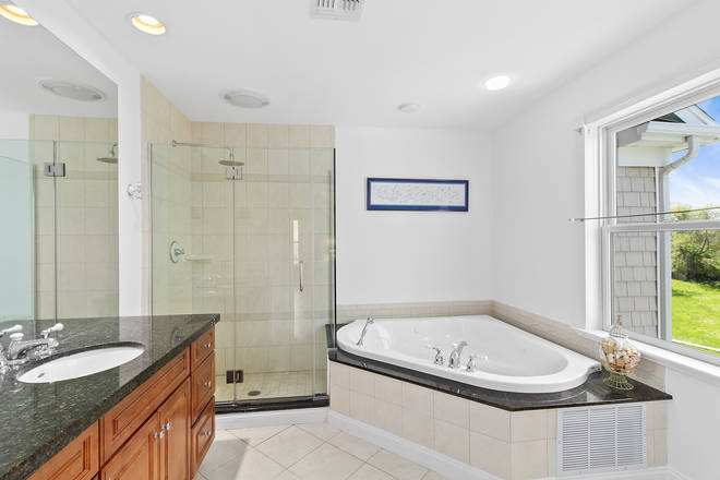 This wonderful and sunny custom built home sits high on 1.2 Acres with custom stacked stone walls, is just a few houses down from Wades Beach. Positioned for maximum sun exposure, the private and well protected WiFi enabled heated pool, with its automatic pool cover and 700 sq feet of marble patio, is located in just the right spot for sunny summer days. Entering the house one will find a 2 story entry foyer with staircase leading up the bedroom area with two master bedroom suites and two guest suites with a shared bath. To the left of the entry hall, there is an office when one needs to work at home. To the right is a living room with south facing windows. Just behind the living room, there is a nice size formal dining room with walls of glass. In the rear of the house, is the large open kitchen with quartz counter tops with center island that leads to the double height great room with fireplace. Leading to the double car garage area is a half bath and a nice size laundry room. Two zone HVAC with WiFi enabled thermostats, are on both the first and second floor for efficiency. In case of a power outage, there is an automatic generator that powers the entire home. Beautifully landscaped with mature specimen trees such as Kwanza Cherry, Weeping Willow and Japanese Maples, this would make a wonderful vacation home or a home that would make a comfortable year round residence. This house is a terrific value and easy to view.